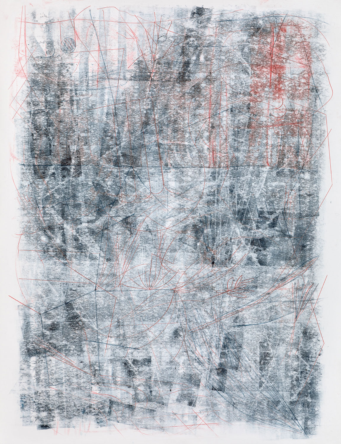 Monotypie und Zeichnung Monotypie und Zeichnung auf Papier150 x 200 cm(c) Lena Schrieb, 2025 Fotos: Jakob Adolphi, 2026